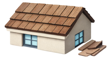 The shingle shake roof gives homes the appearance of rural houses but requires maintenance from water and weathering. Repair may involve the replacement of broken shakes or the application of protective coatings on the roof.