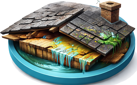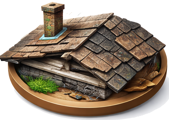 Shingles or metal roof panels are being stripped off by strong winds, leaving the underlayment exposed.